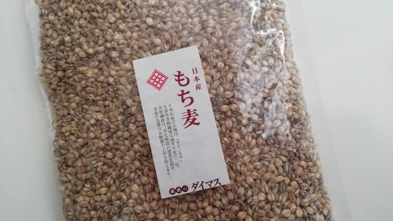 豆雑穀専門店ダイマスさんでは、もち麦も押し麦加工してあるそう。周りの皮を残してあるので色も茶色です。